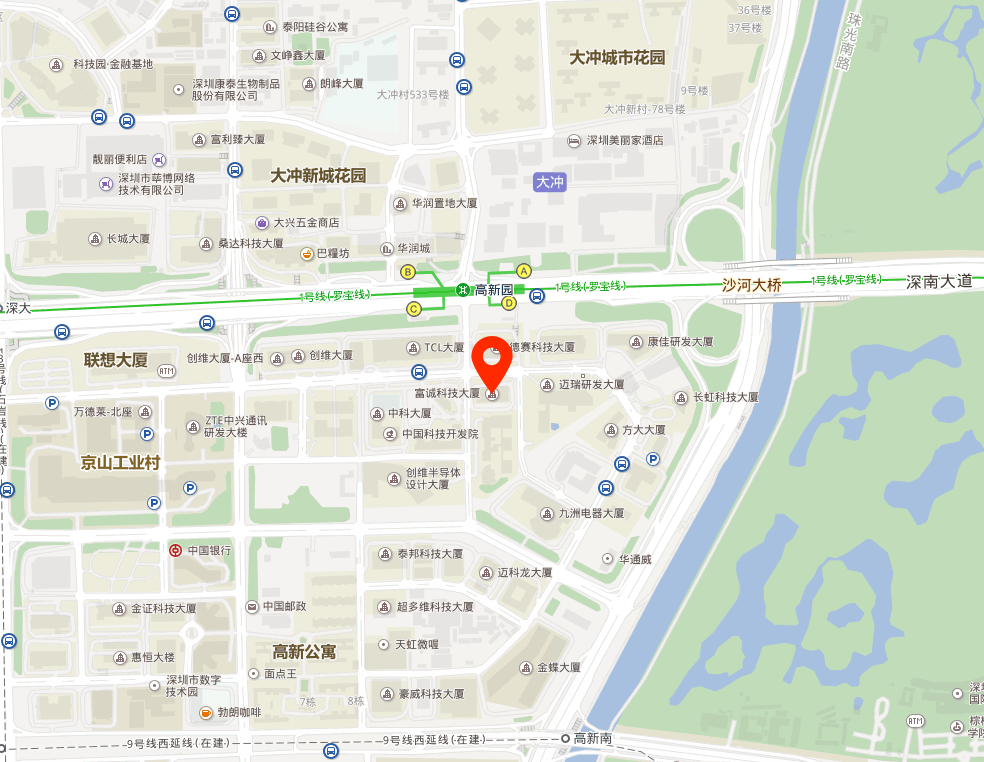 附近的地铁站: 距离地铁1号线的高新园站约200米 附近的公交站: 距离中科大厦 - 公交站163米; 途经公交车: 72路 M109路 M530路 高峰专线165路 高峰专线54 高峰专线54路 距离大冲② - 公交站214米; 途经公交车: 19路 21路 42路 101路 113路 204路 223路 234路 B608路环线 M448路 N4路 高峰专线128路 高峰专线36号 距离大冲① - 公交站214米; 途经公交车: 19路 21路 42路 72路 101路 113路 204路 223路 234路 320路 323路 324路 338路 369路 395路 395路大站快车 H205线 K1路 M109路 M191路 M194路 M358路 M372路 M413路 M435路 M448路 M530路 M554路 N4路 高峰专线128路 高峰专线150路 高峰专线165路 高峰专线31路 高峰专线36号 高快巴士49号 观光巴士橙线 距离科技园公交总站 - 公交站400米; 途经公交车: M487路 高峰专线21号 高快巴士49号 高快巴士56号 距离科技园公交总站 - 公交站407米; 途经公交车: M487路 高峰专线21号 高快巴士49号 距离创维大厦 - 公交站498米; 途经公交车: 72路 M109路 M200路 M474路 M530路 M562路 高峰专线34号 高峰专线36号 高峰专线54路 高快巴士49号 距离大冲城市花园 - 公交站560米; 途经公交车: 72路 M109路 距离深南科技立交北 - 公交站643米; 途经公交车: B608路环线 M474路 M562路 高峰专线34号 距离高新公寓 - 公交站649米; 途经公交车: 49路 72路 236路 339路 M109路 M200路 M313路 M474路 M487路 M530路 M562路 高峰专线120路 高峰专线158路 高峰专线165路 高峰专线43路